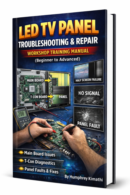 📘 LED TV Panel Troubleshooting & Repair – Workshop Training Manual (Beginner to Advanced) is a practical, technician-focused guide designed for real electronics repair workshops, not theory classrooms. This eBook takes you step-by-step through how LED TV panels actually work, how image signals flow from the main board to the panel, and how to correctly diagnose panel, T-Con, and main board faults without guesswork or unnecessary board replacement. Written from real workshop experience, the book covers common and complex panel faults such as: No picture but sound Half-screen failures Vertical and horizontal lines White screen and dark screen issues Backlight and COF (TAB bonding) failures Each chapter includes clear explanations, diagnostic flowcharts, voltage interpretation (VGH, VGL, AVDD, VCOM), safety warnings, and professional repair decision guidance to help technicians know when to repair, when to replace, and when to advise honestly. This manual is ideal for: Beginner technicians learning LED TV repair Intermediate repairers wanting accurate diagnosis Workshop owners training students or staff Technicians working in African and developing markets By the end of this eBook, you will be able to: ✔ Confidently diagnose LED TV panel problems ✔ Avoid unnecessary and costly mistakes ✔ Communicate panel issues professionally to customers ✔ Operate like a skilled, ethical repair technician
